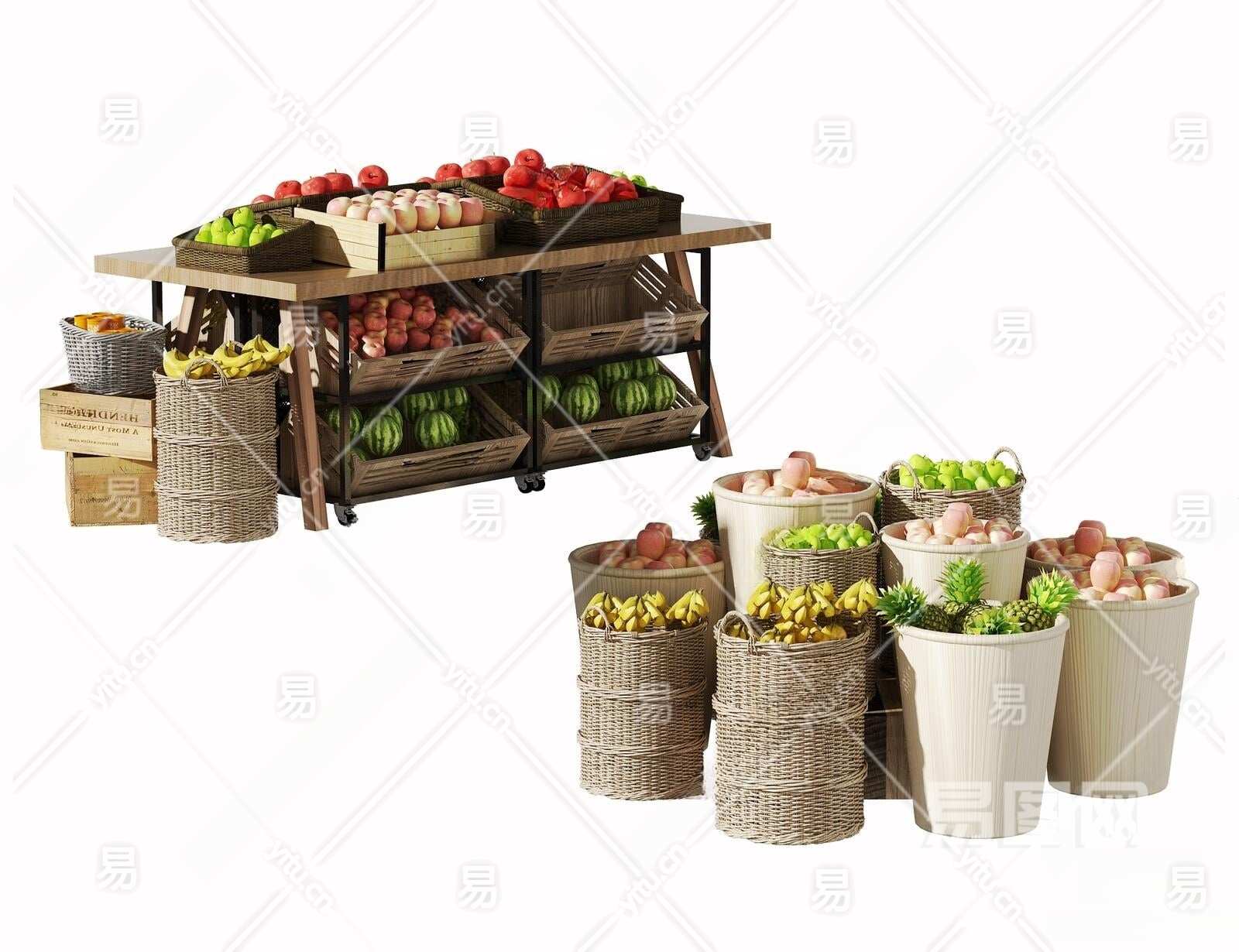 现代超市水果展示架3D模型下载