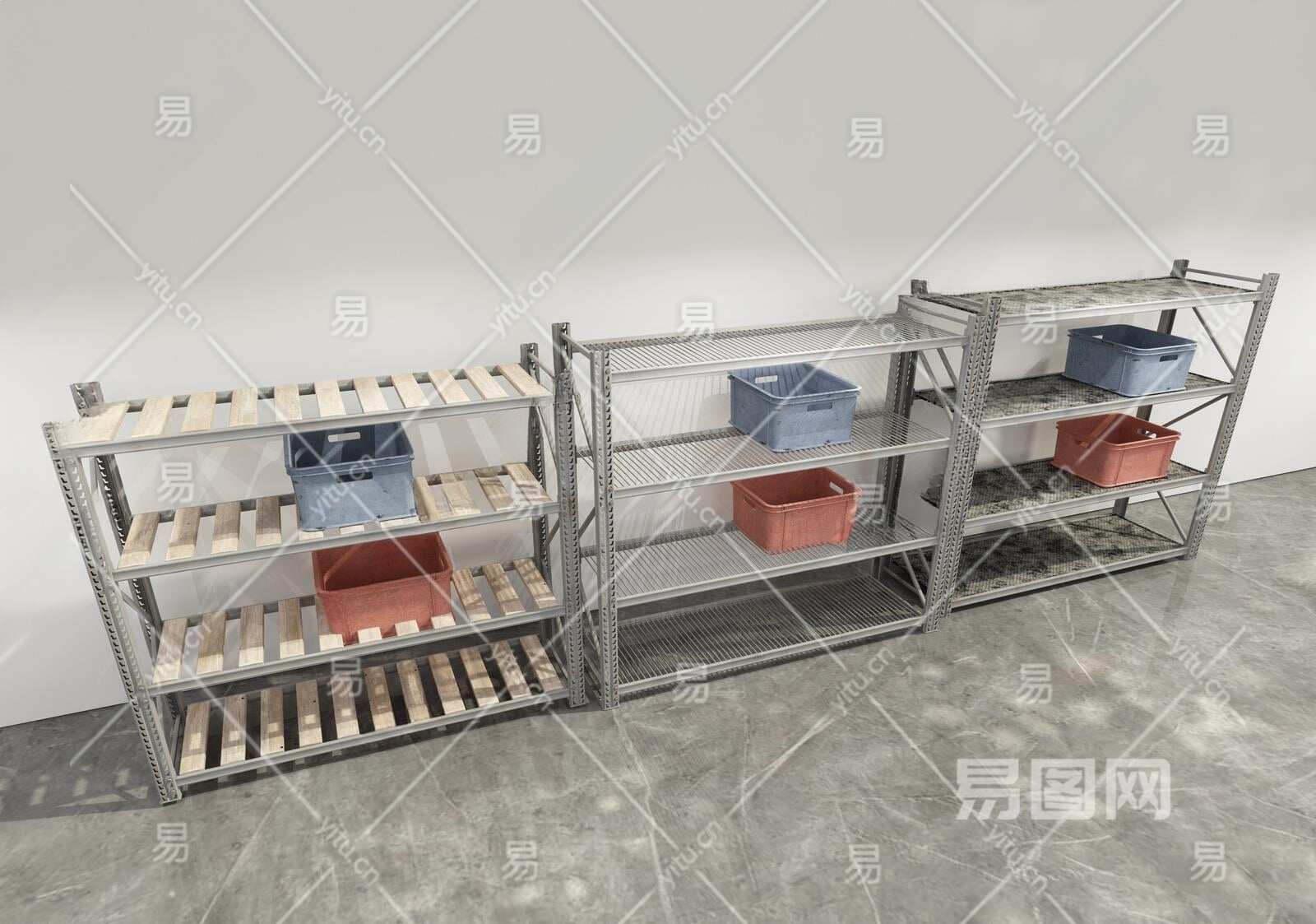 现代厨房不锈钢货架3D模型下载