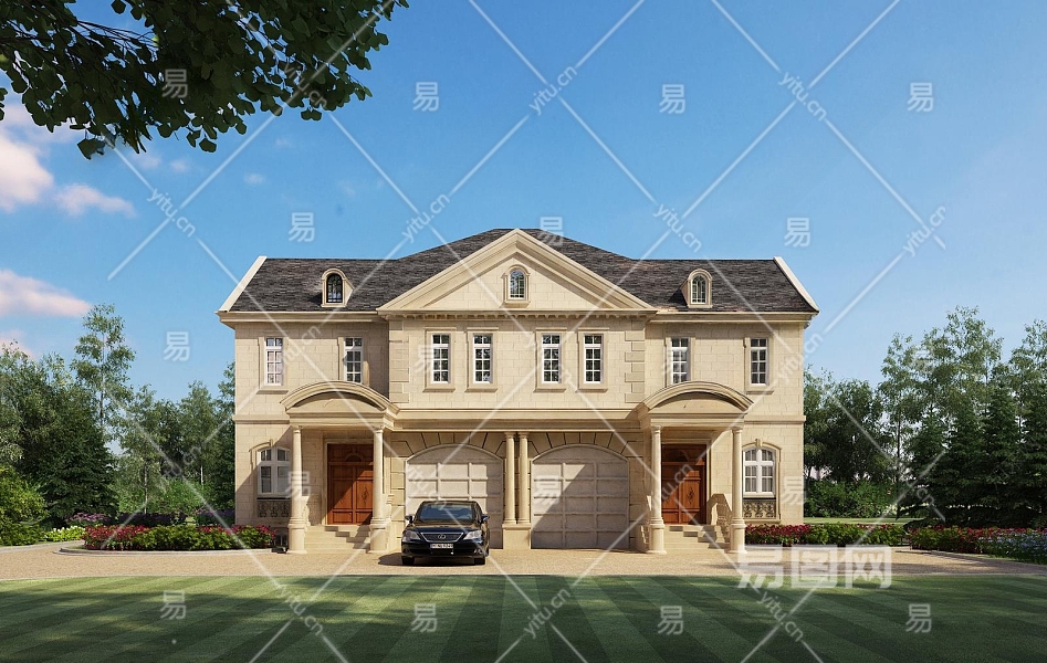 欧式古典双拼别墅3D模型下载