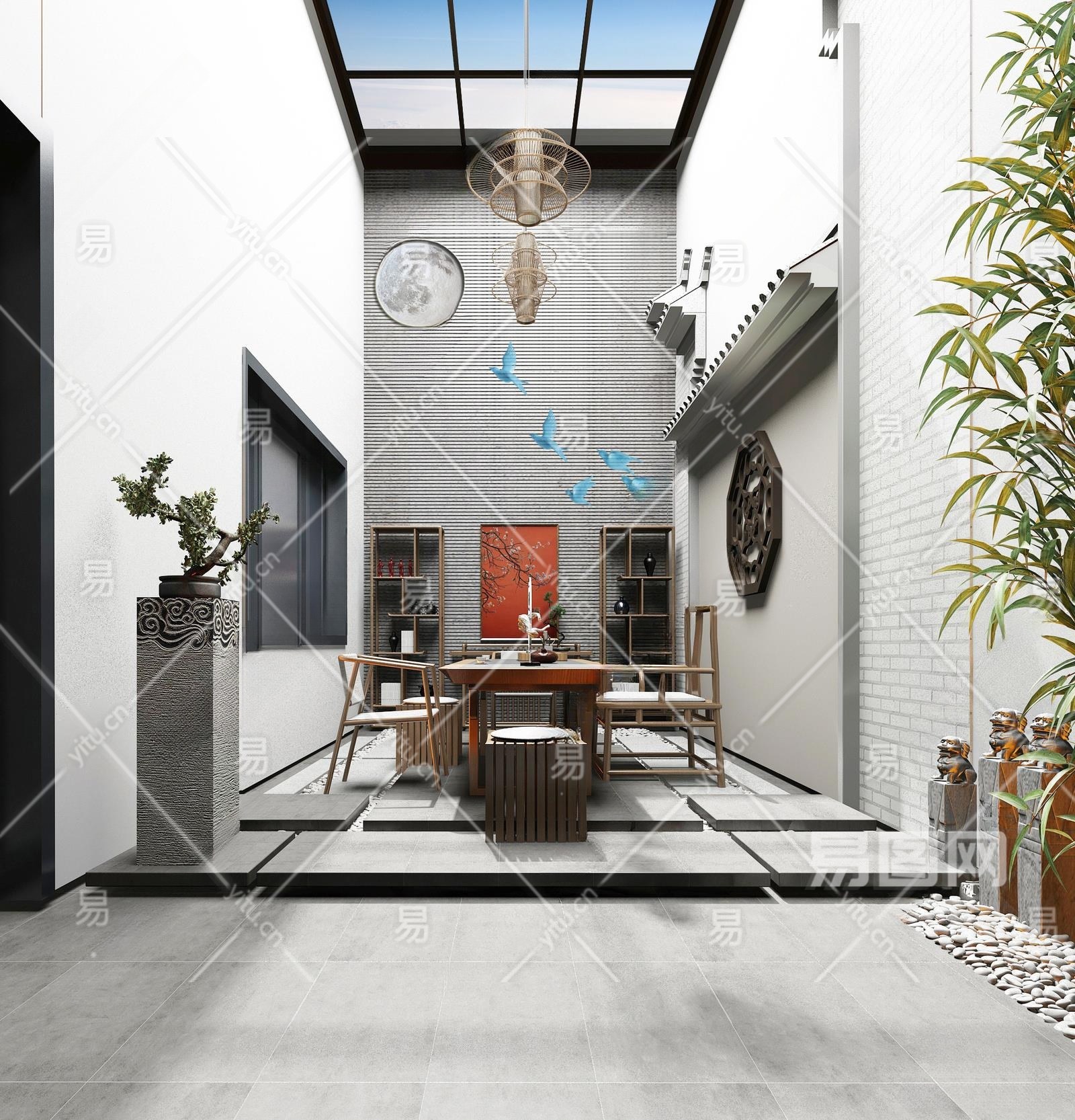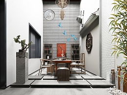 新中式别墅天井3D模型下载