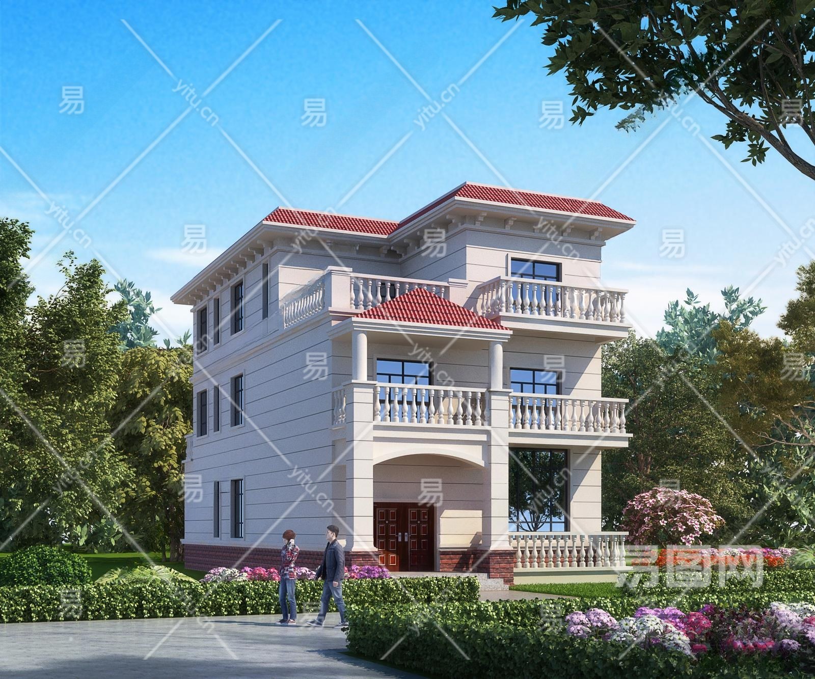 简欧别墅外观3D模型下载