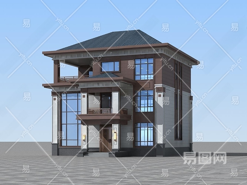 新中式别墅3D模型下载