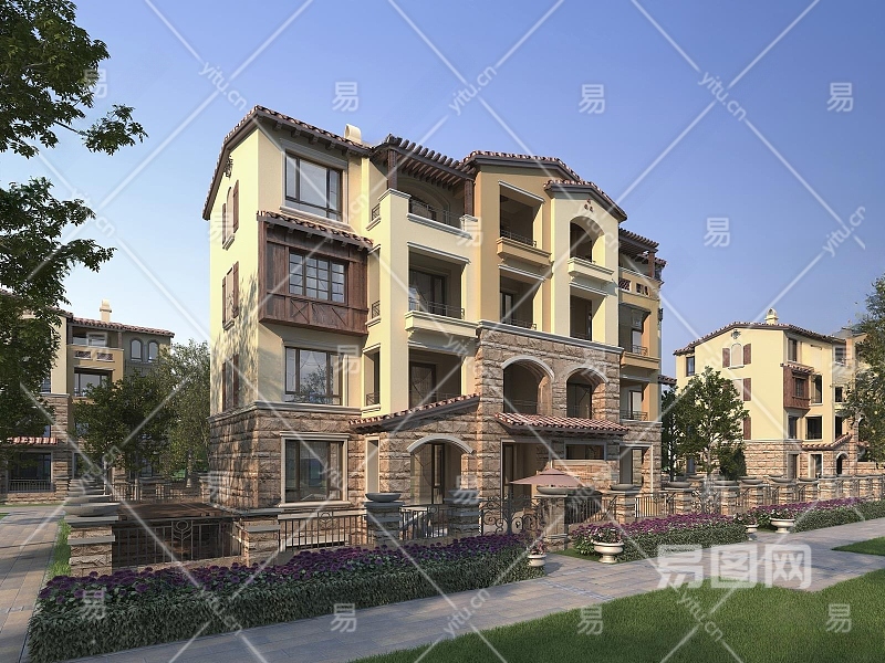 简欧连排别墅3D模型下载