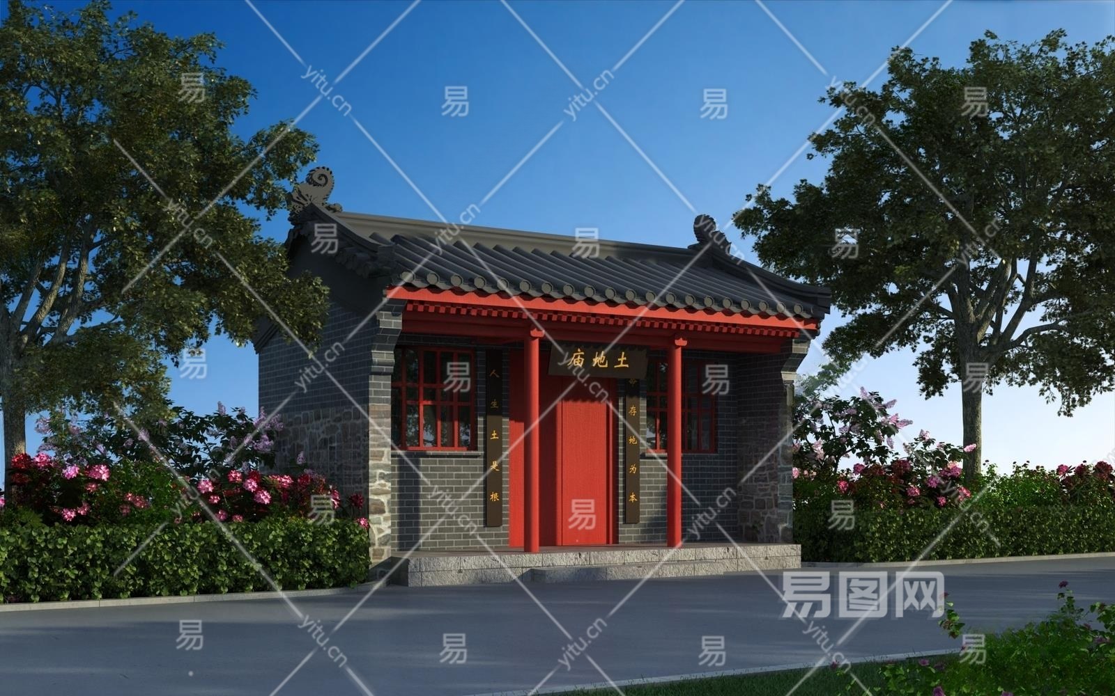 中式土地庙外观3D模型下载