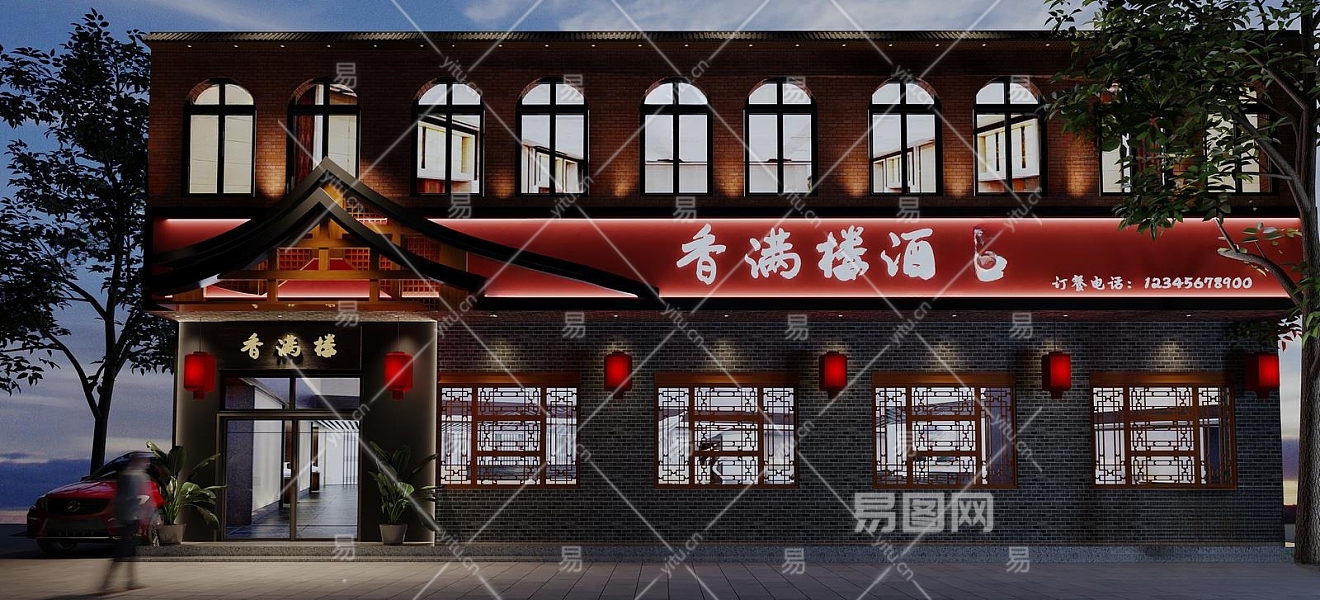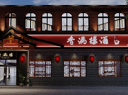 新中式酒店餐饮门头门面3D模型下载
