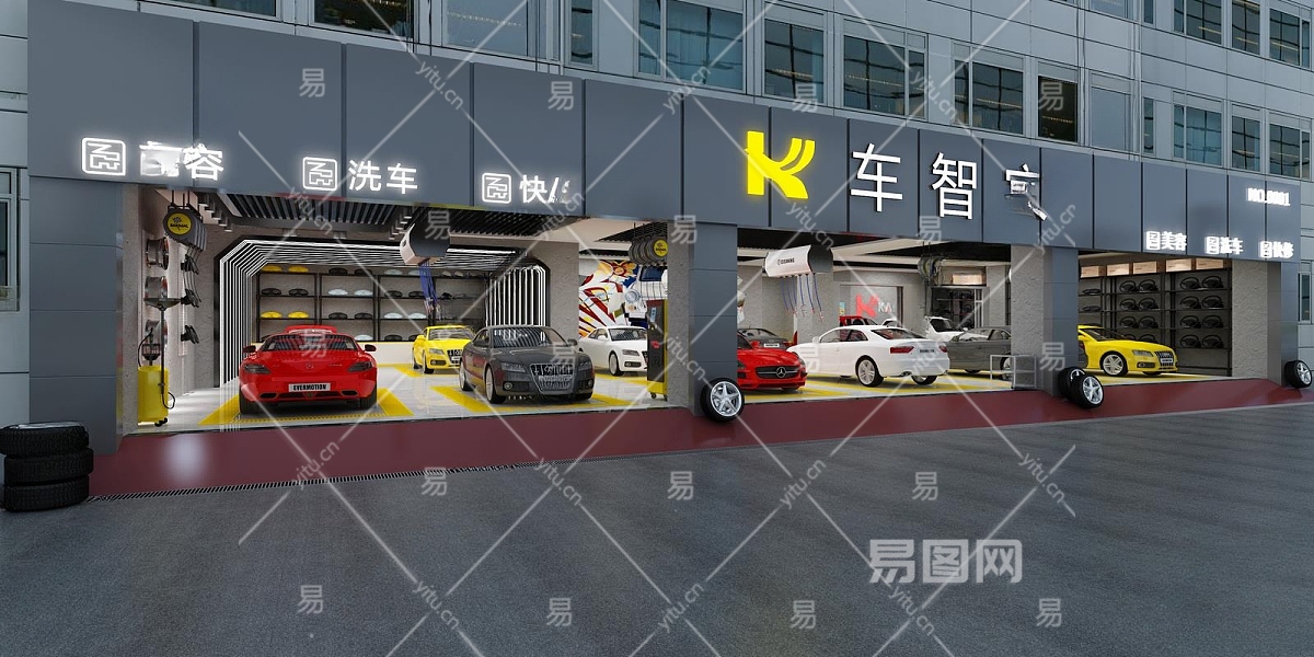 现代美容汽修门头3D模型下载