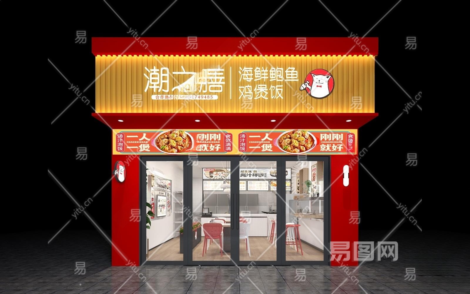 现代中餐店门头3D模型下载