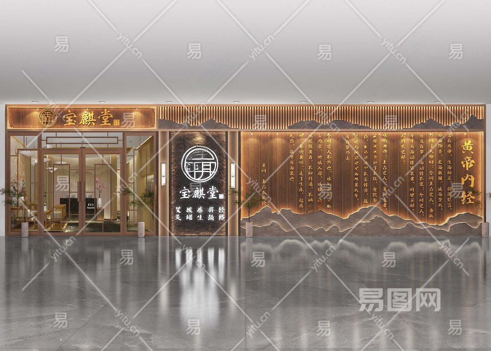 新中式按摩养生馆门头门面3D模型下载