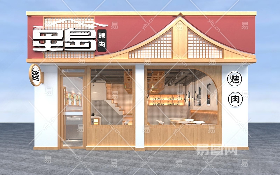 新中式烤肉店门头3D模型下载