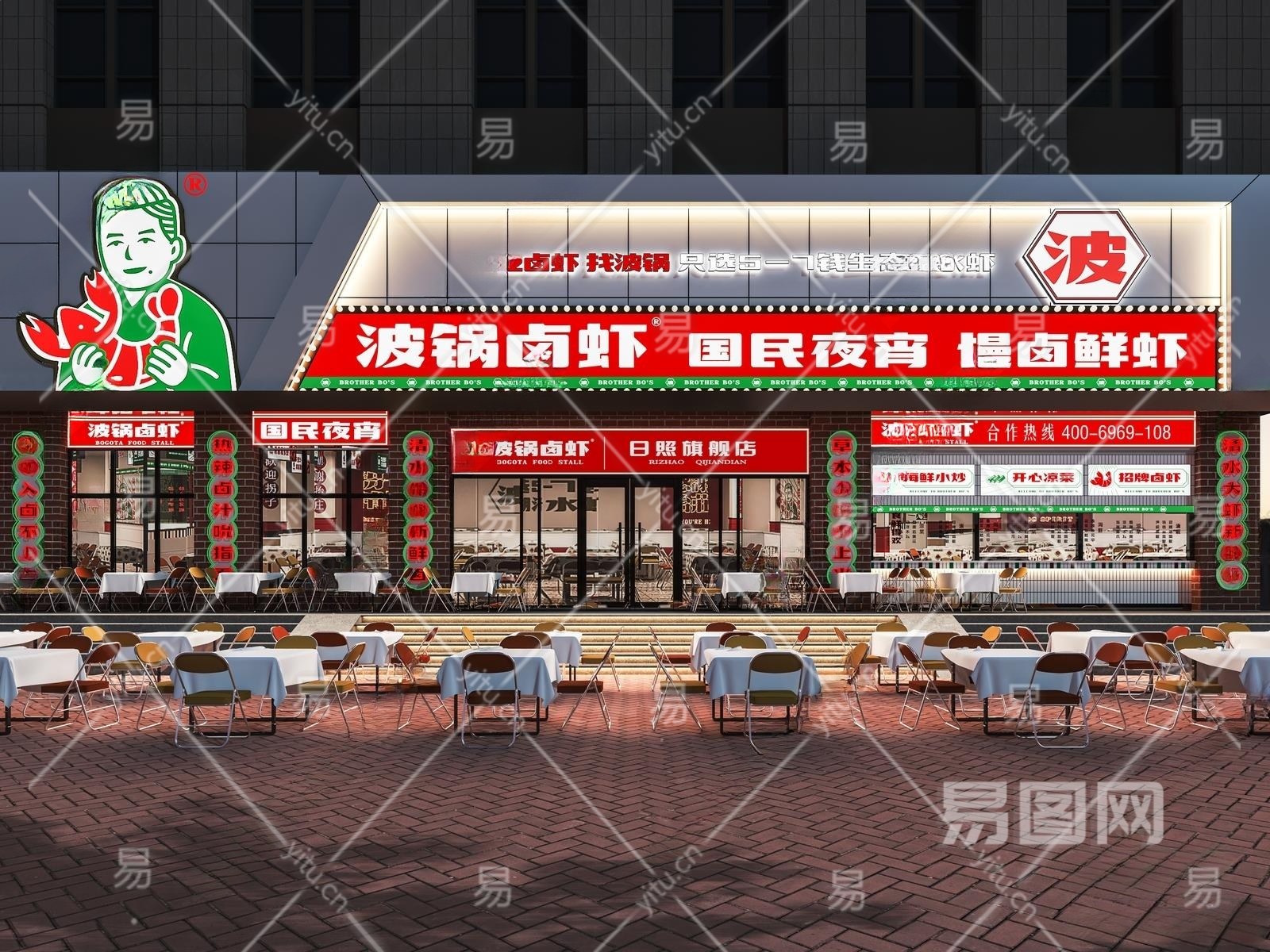 现代卤虾门头门面3D模型下载