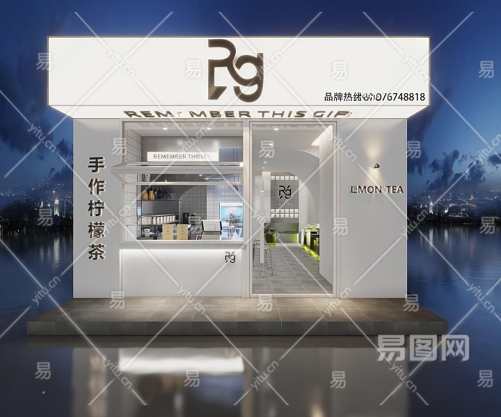 现代奶茶店门头3D模型下载