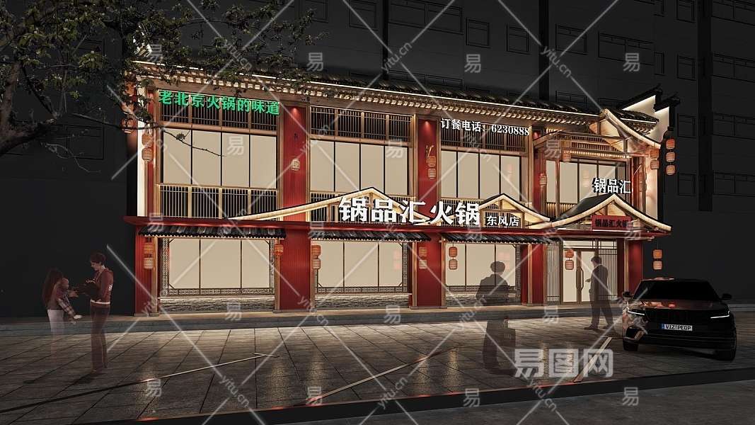 新中式火锅店门头3D模型下载