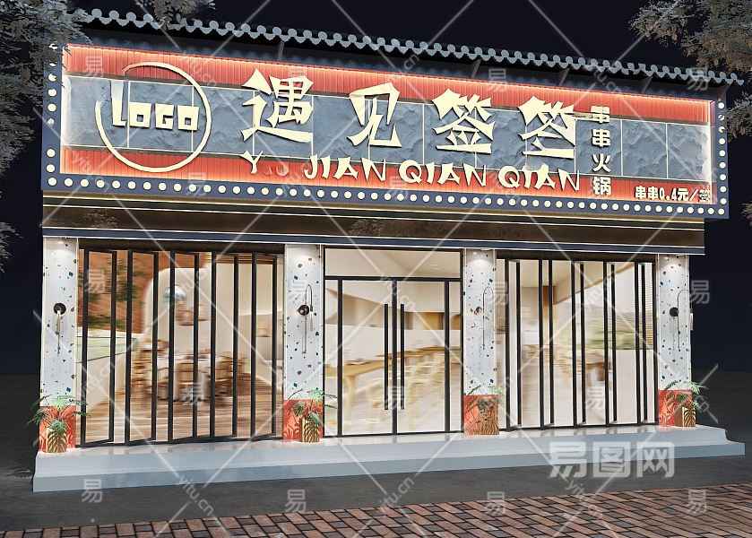 现代串串火锅小吃门头门面3D模型下载
