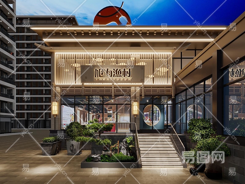 当前的位置:首页 > 3D模型 > 建筑外观 > 门面门头 > 新中式中餐厅门头门面3D模型下载