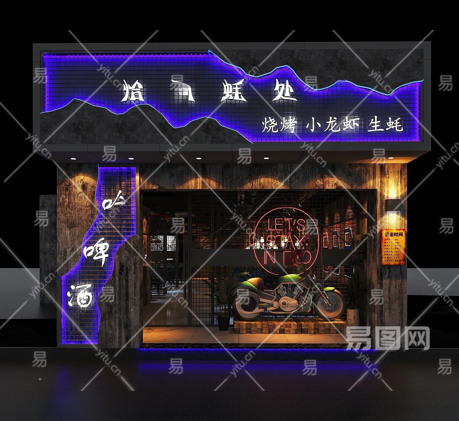 工业风音乐餐厅门头3D模型下载