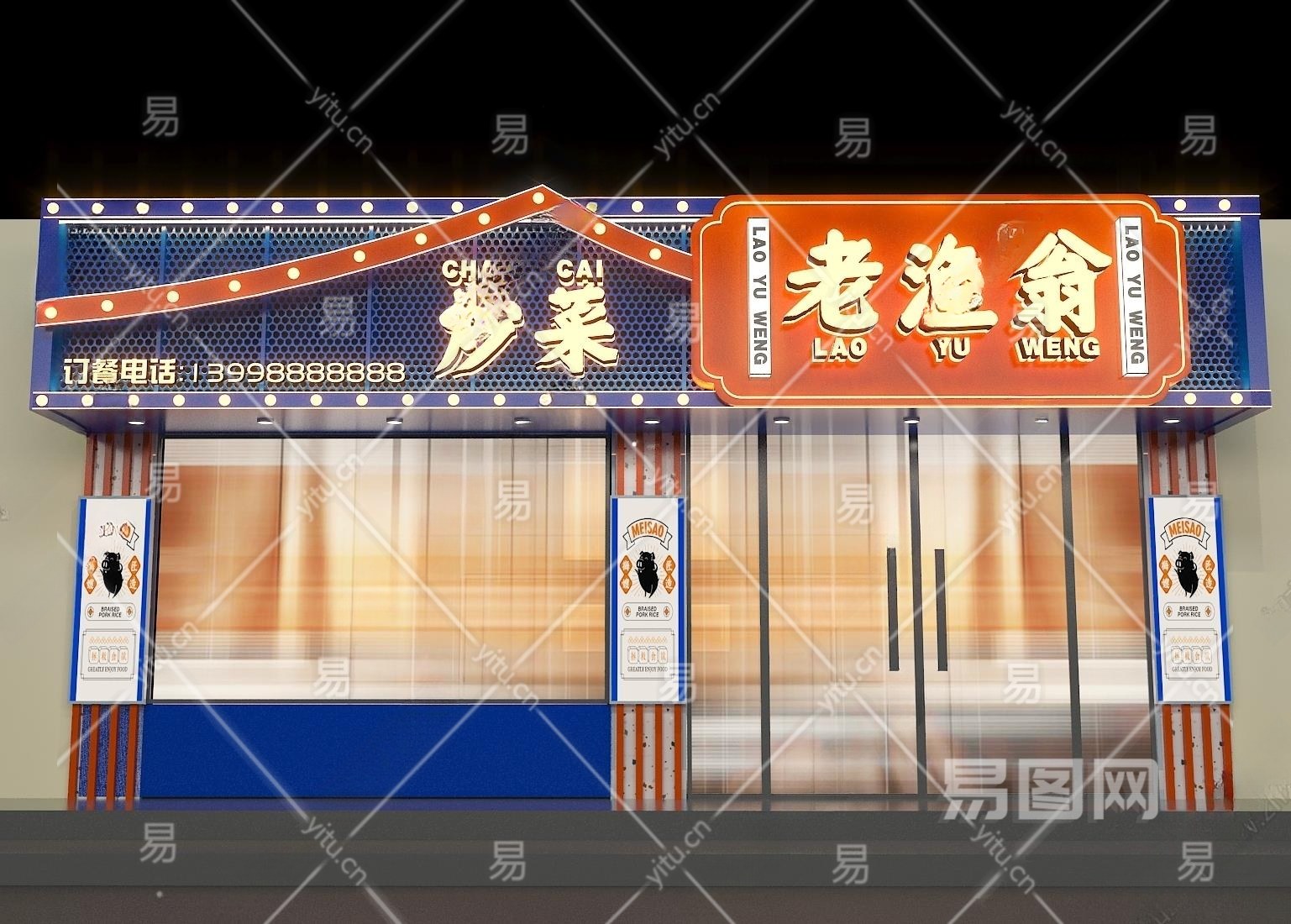 现代餐厅门头门面3D模型下载