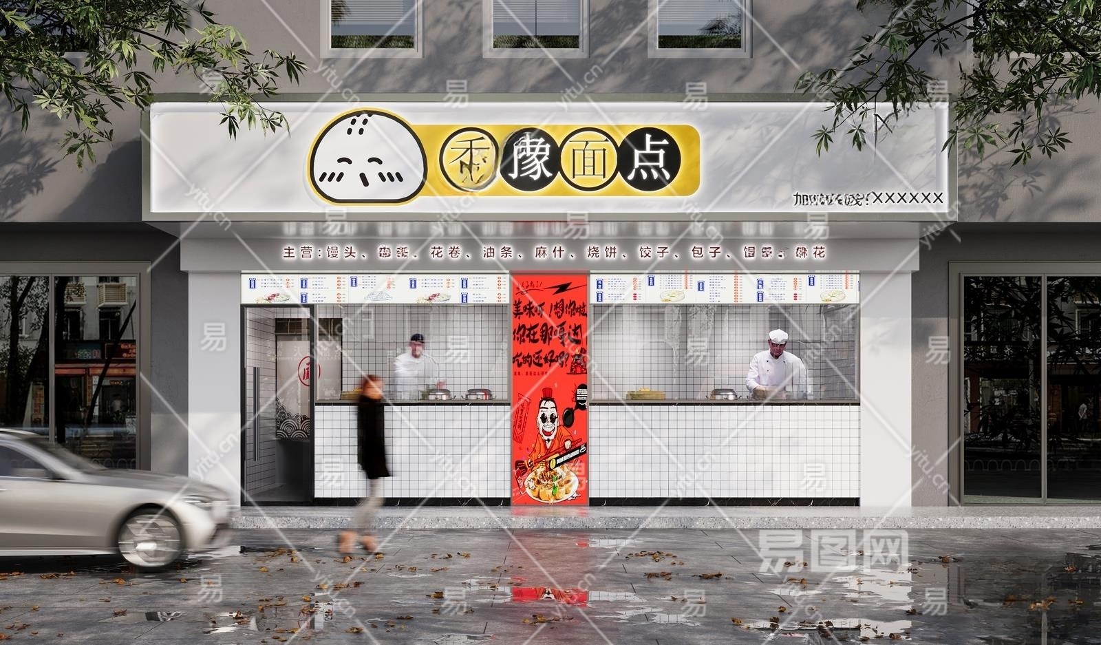 现代面点店门头3D模型下载