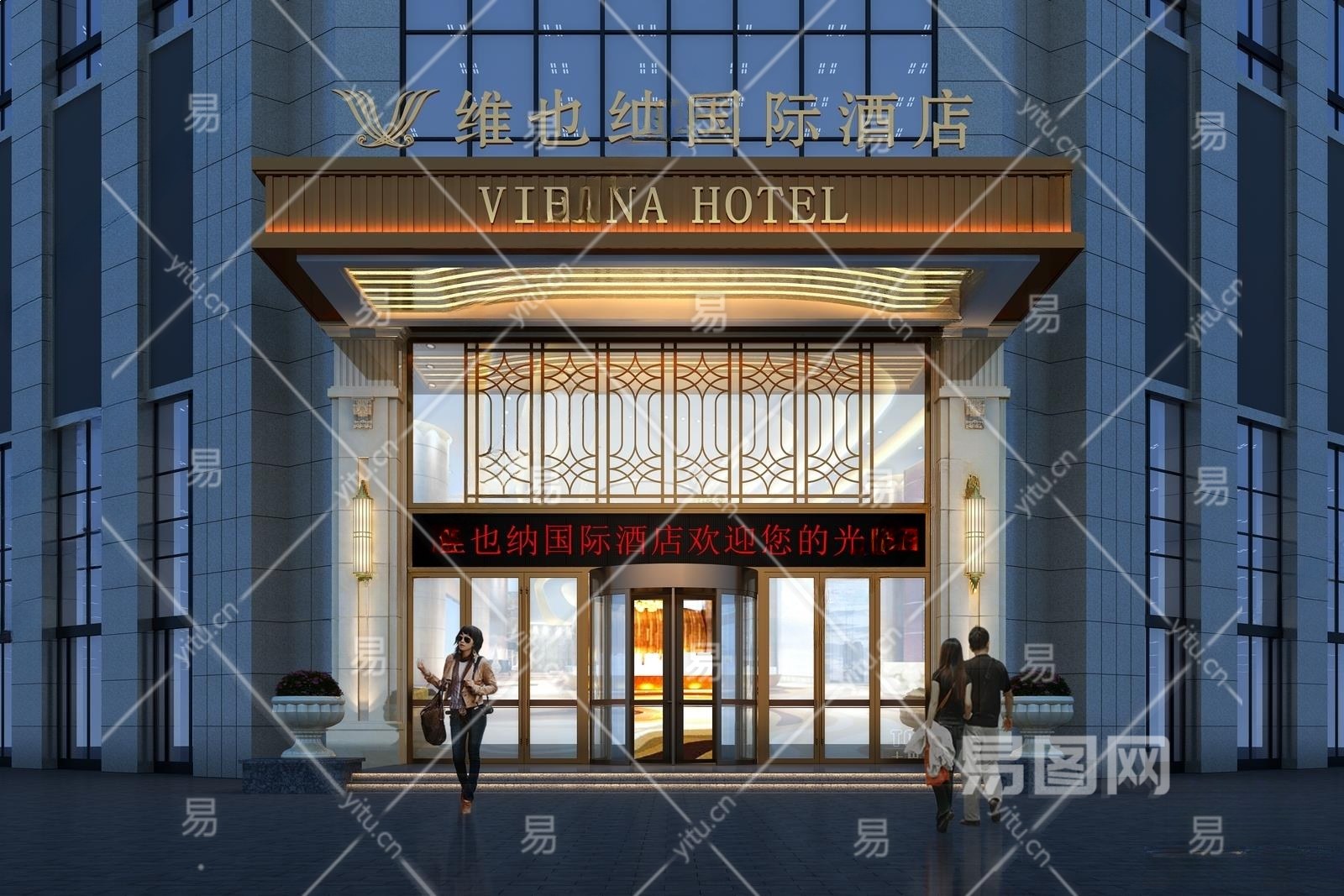 简欧维也纳酒店门头3D模型下载