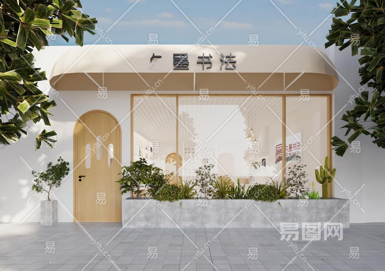 现代培训机构门头3D模型下载