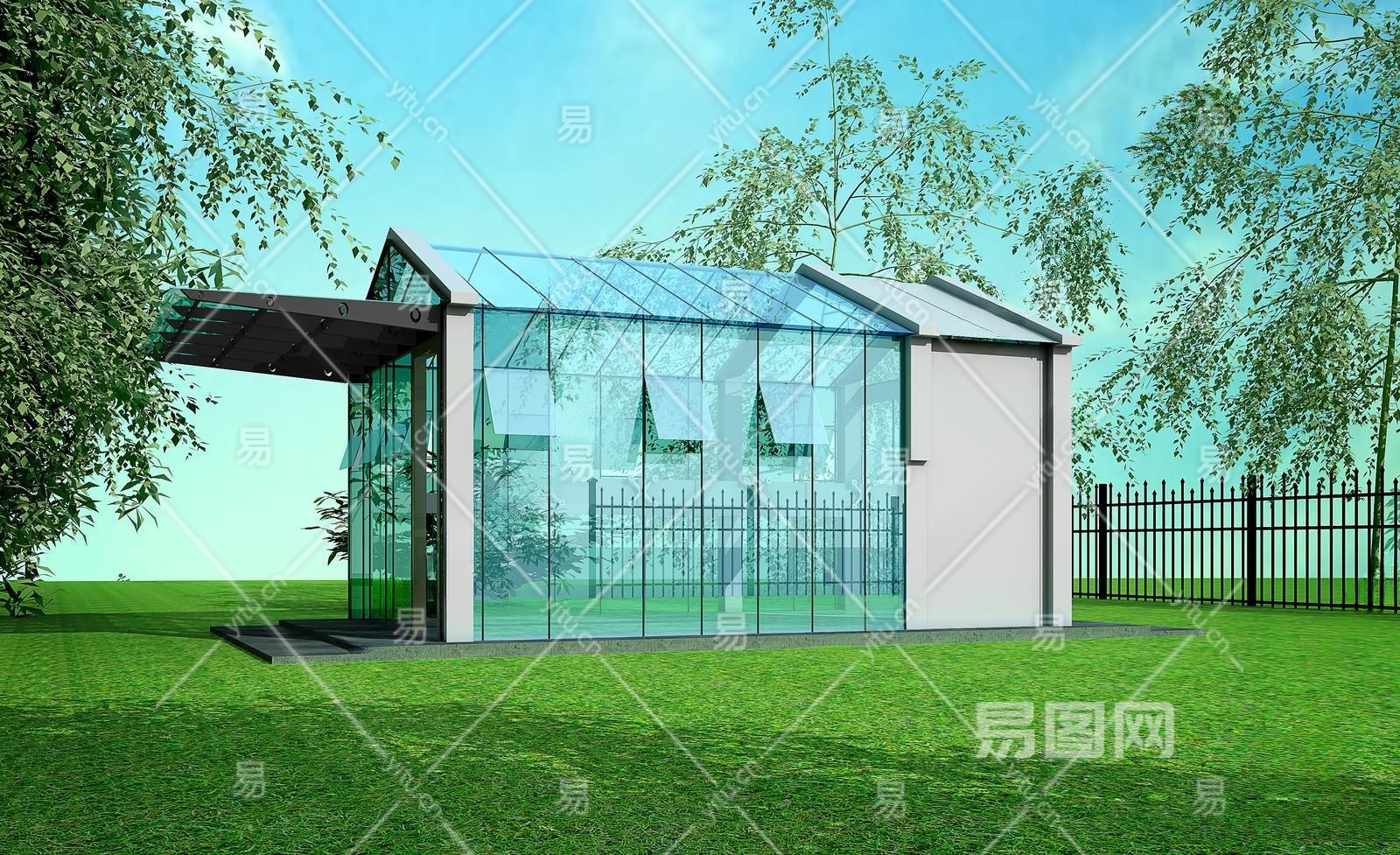 现代玻璃仓库3D模型下载