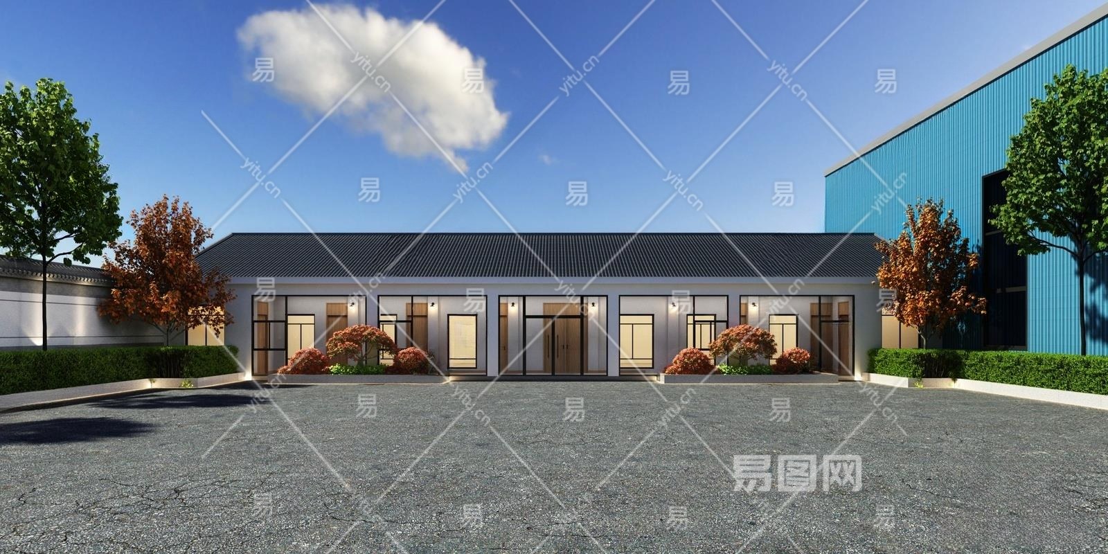 现代办公厂房3D模型下载