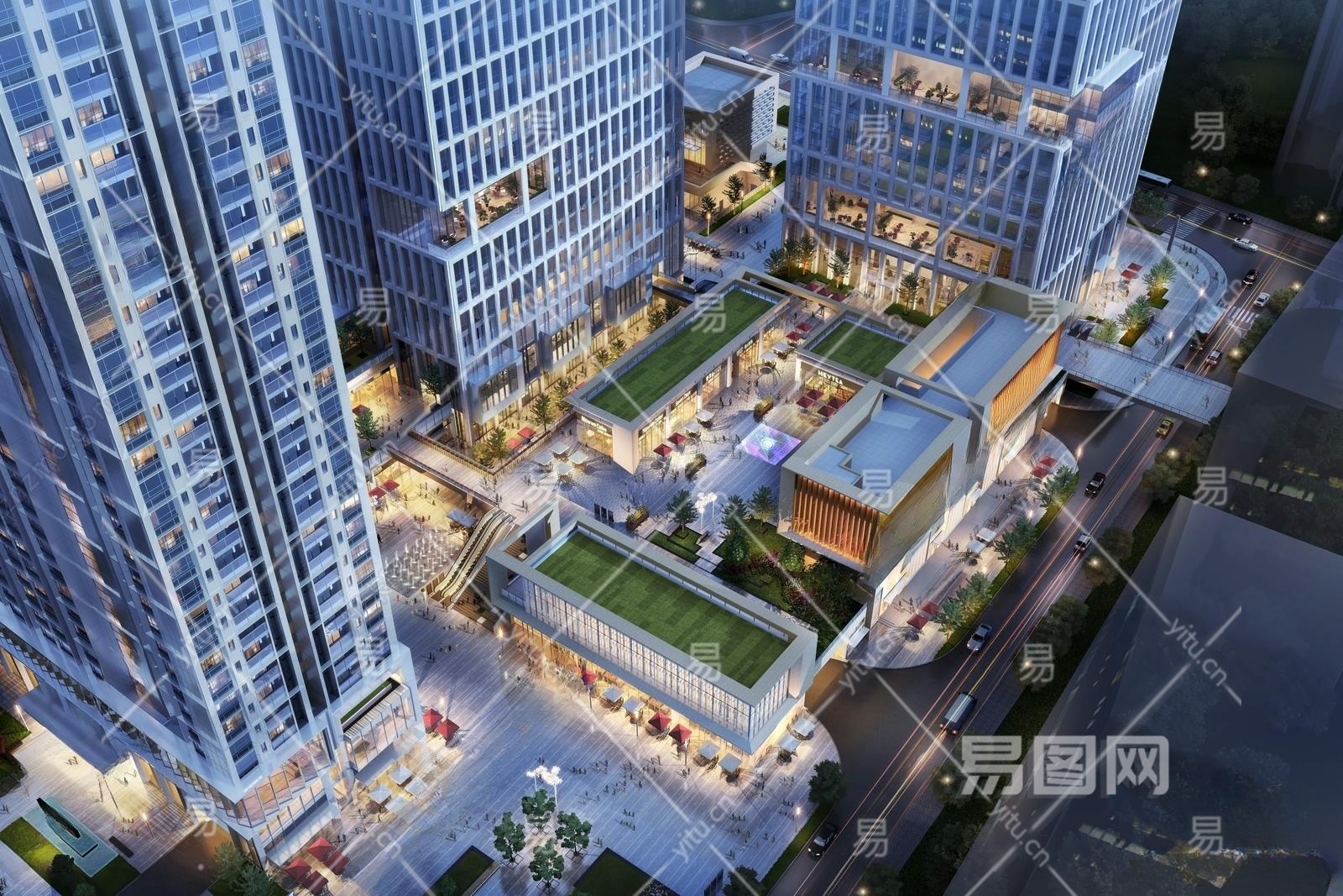 现代商业街鸟瞰3D模型下载