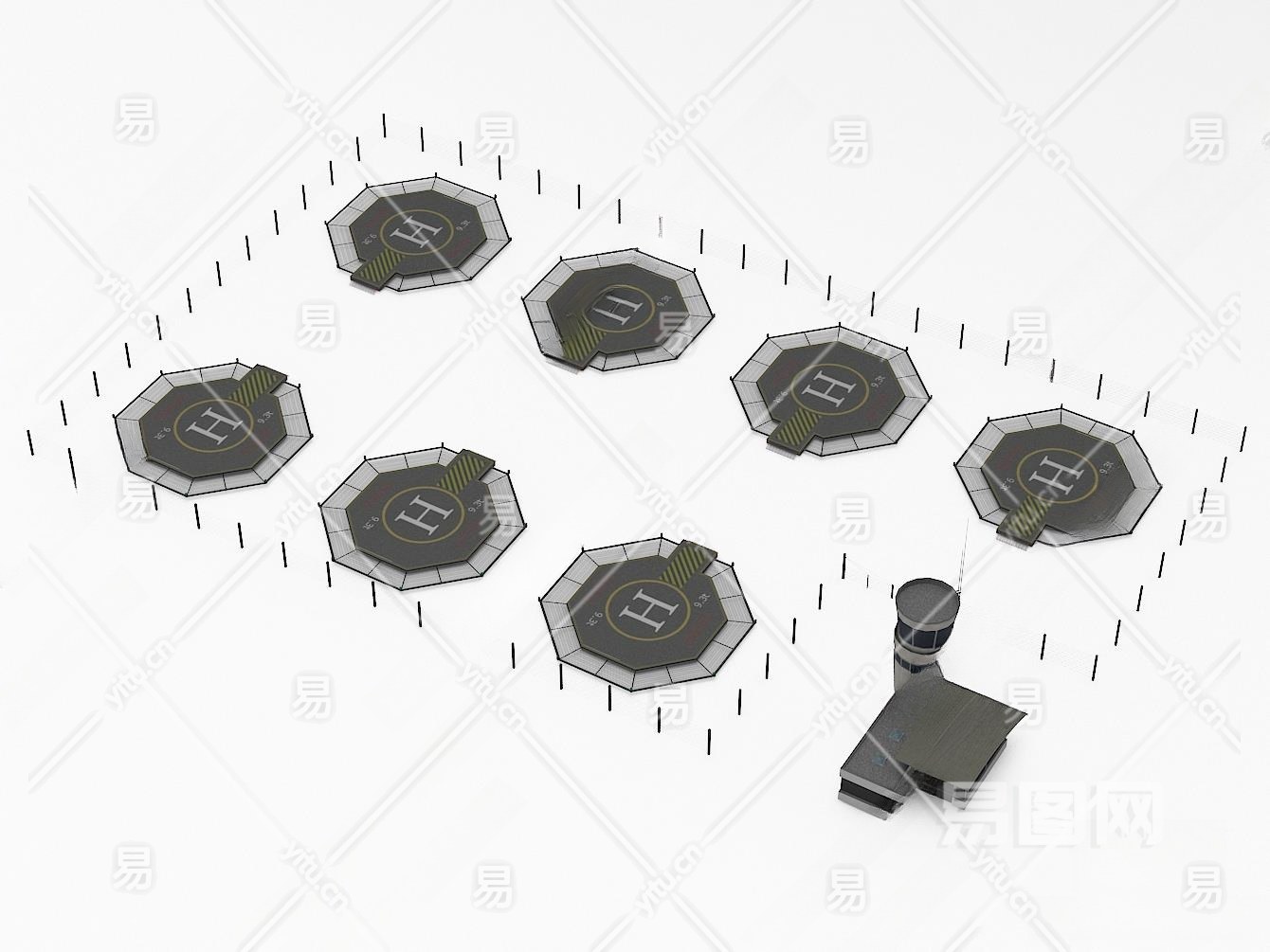 现代直升机停机坪3D模型下载