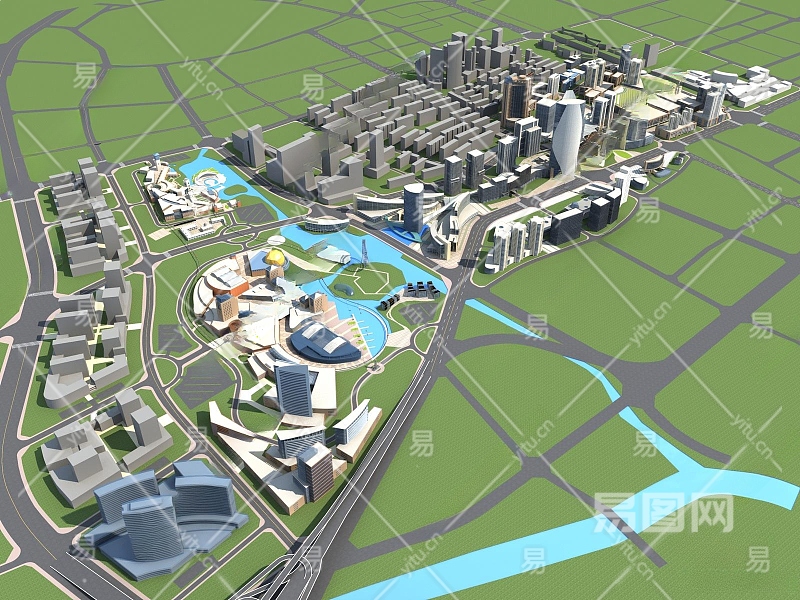 现代鸟瞰规划3D模型下载