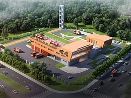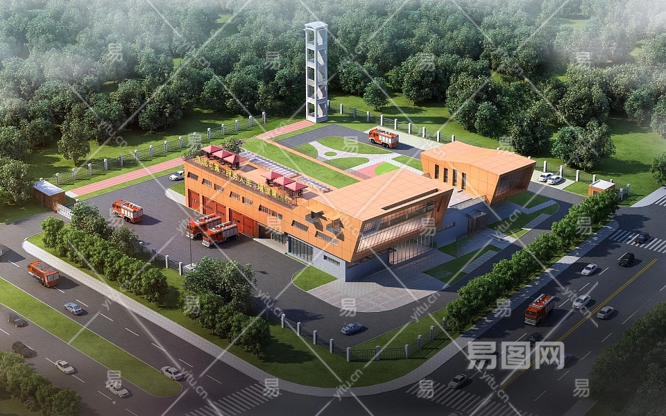 现代消防队办公楼鸟瞰规划3D模型下载