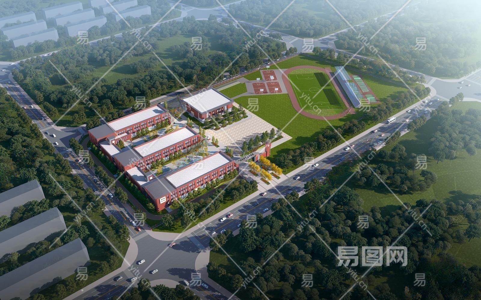 现代学校鸟瞰3D模型下载