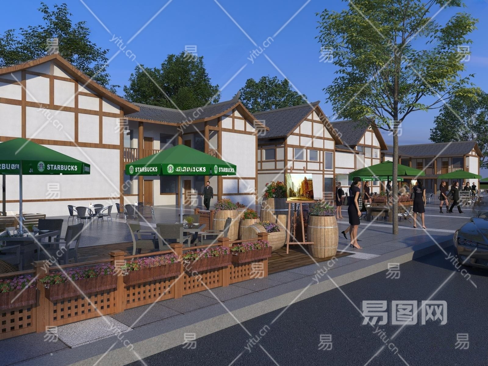 新中式商业街3D模型下载