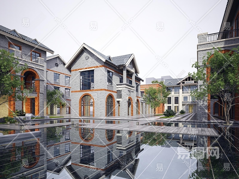 现代民国风商业街3D模型下载