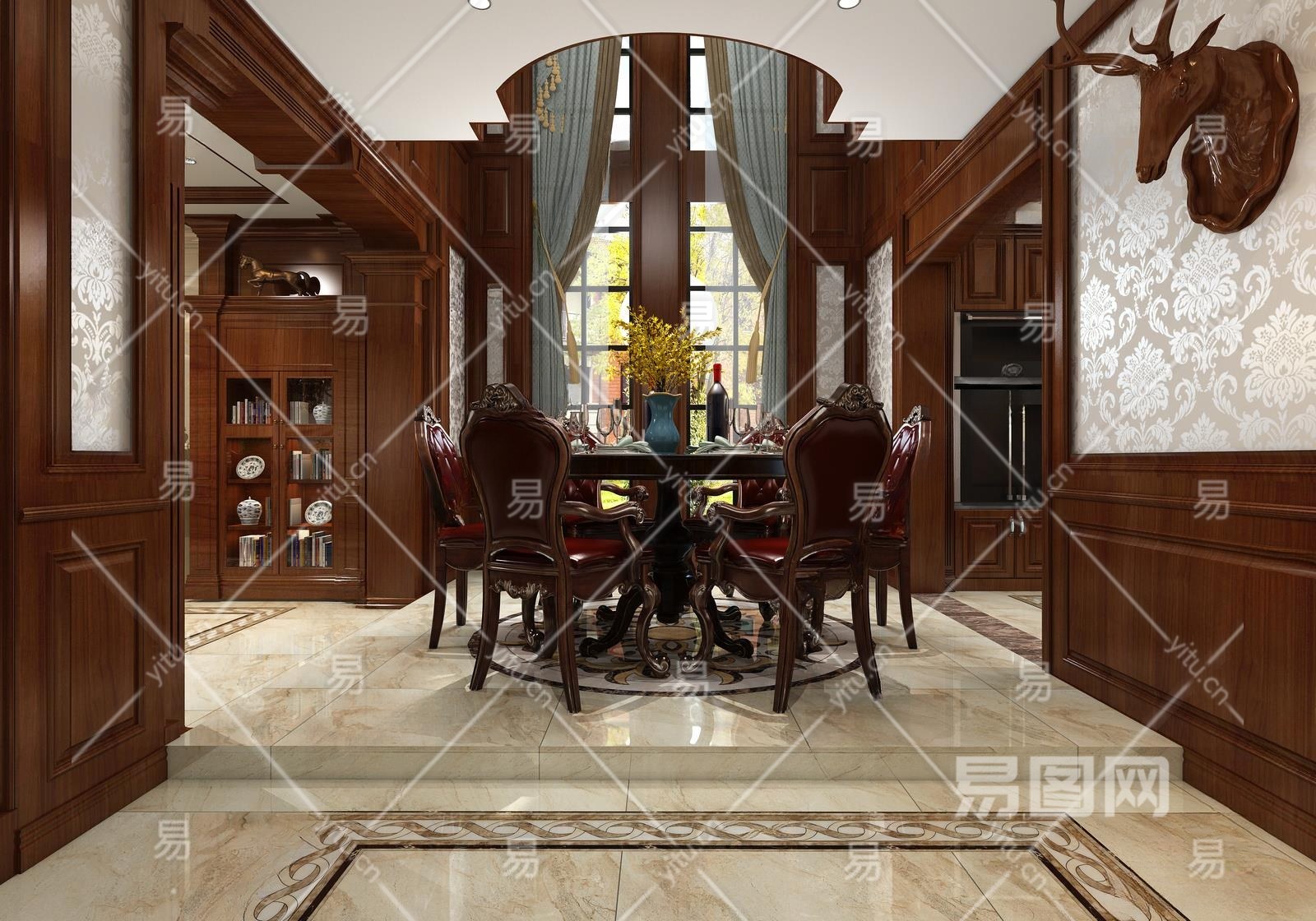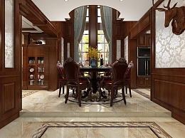 美式别墅餐厅3D模型下载