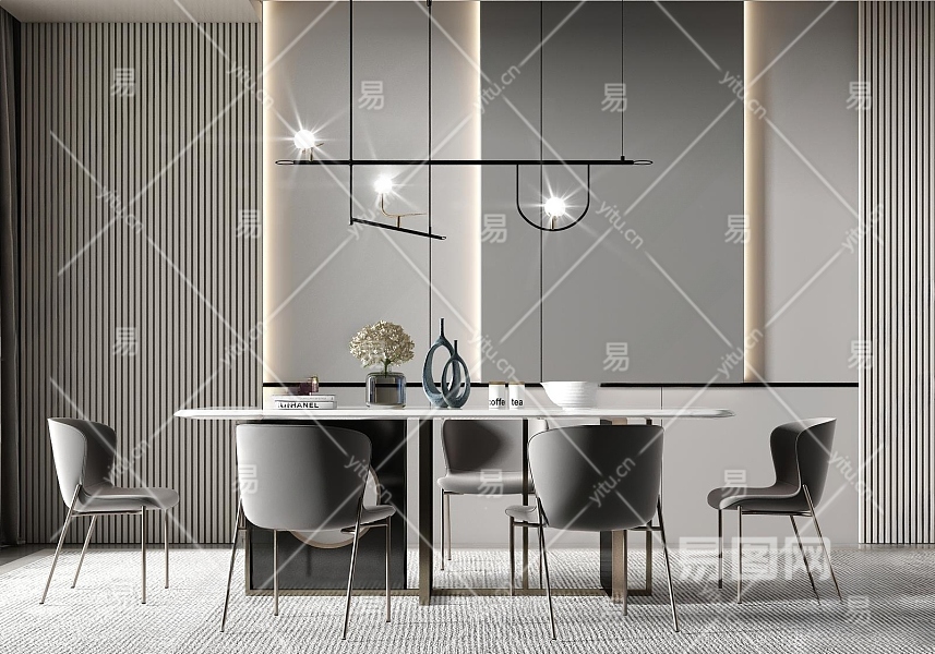 现代轻奢餐厅3D模型下载