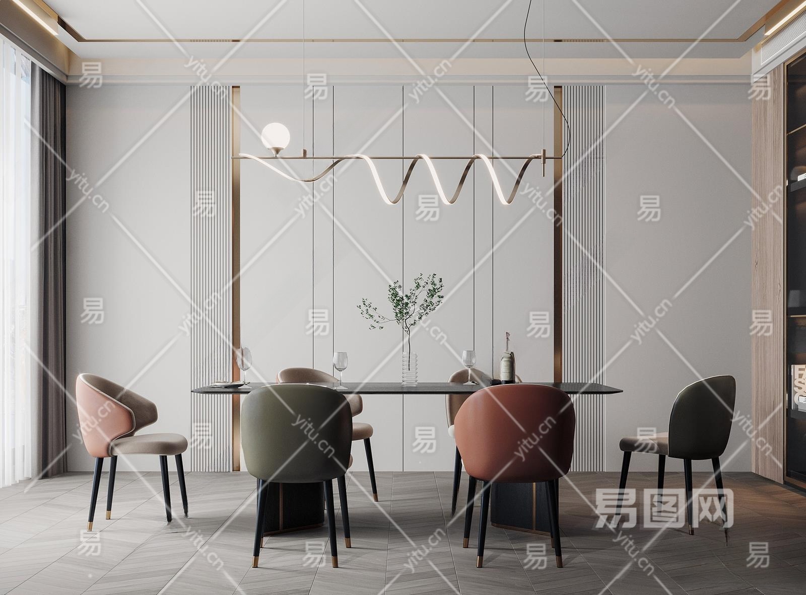 现代家居餐厅3D模型下载