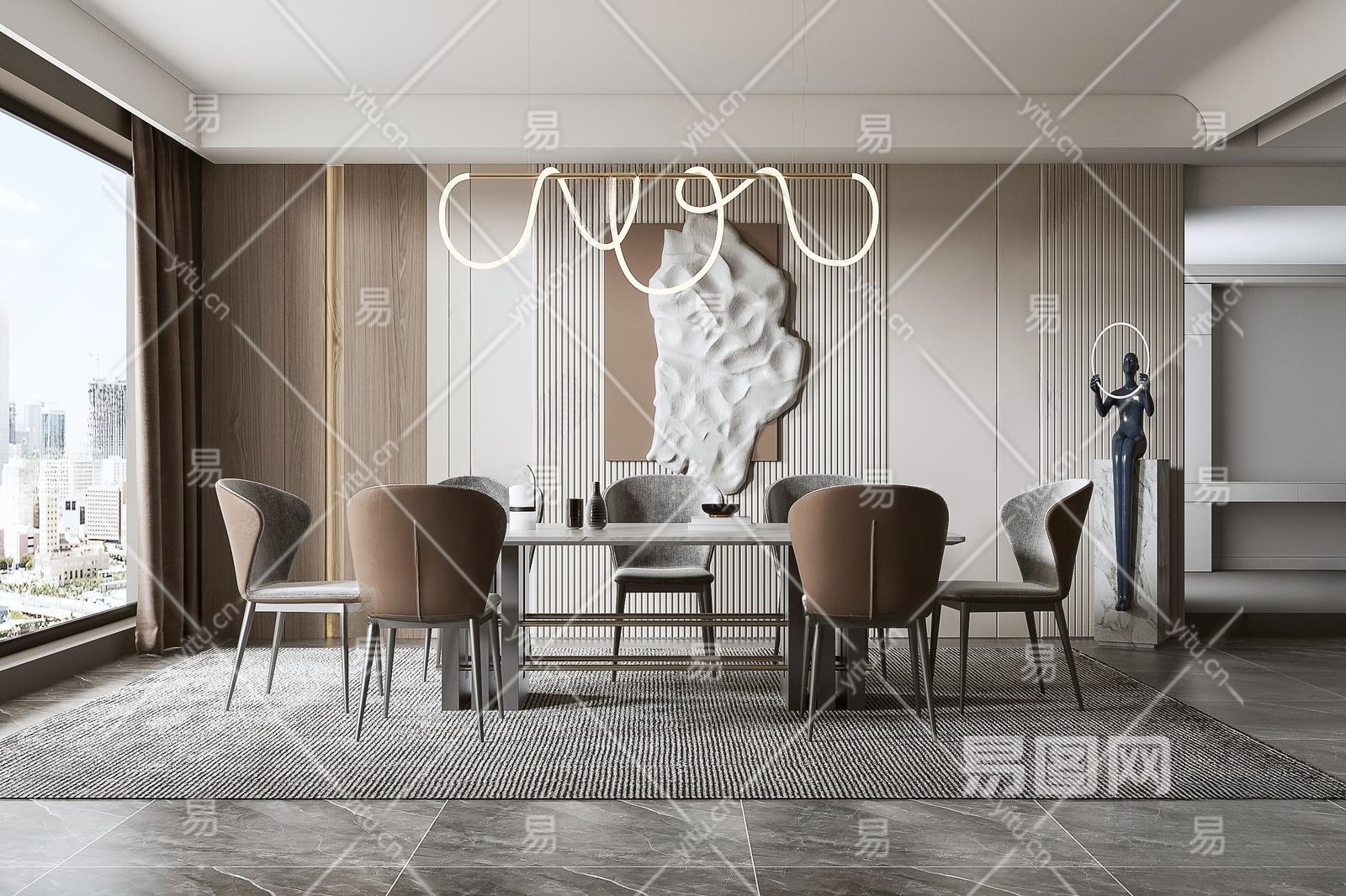 现代家居餐厅3D模型下载