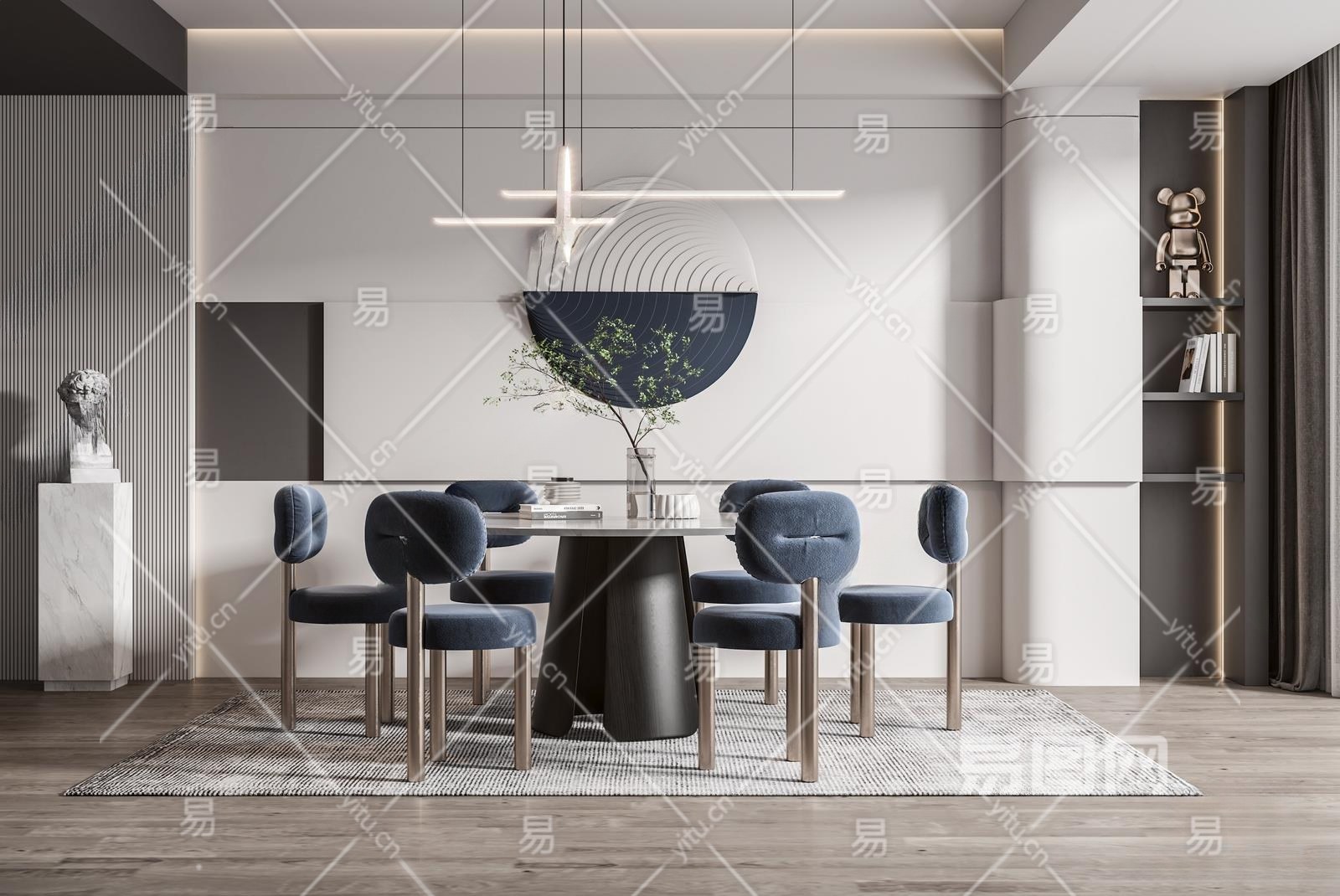 现代家居餐厅3D模型下载