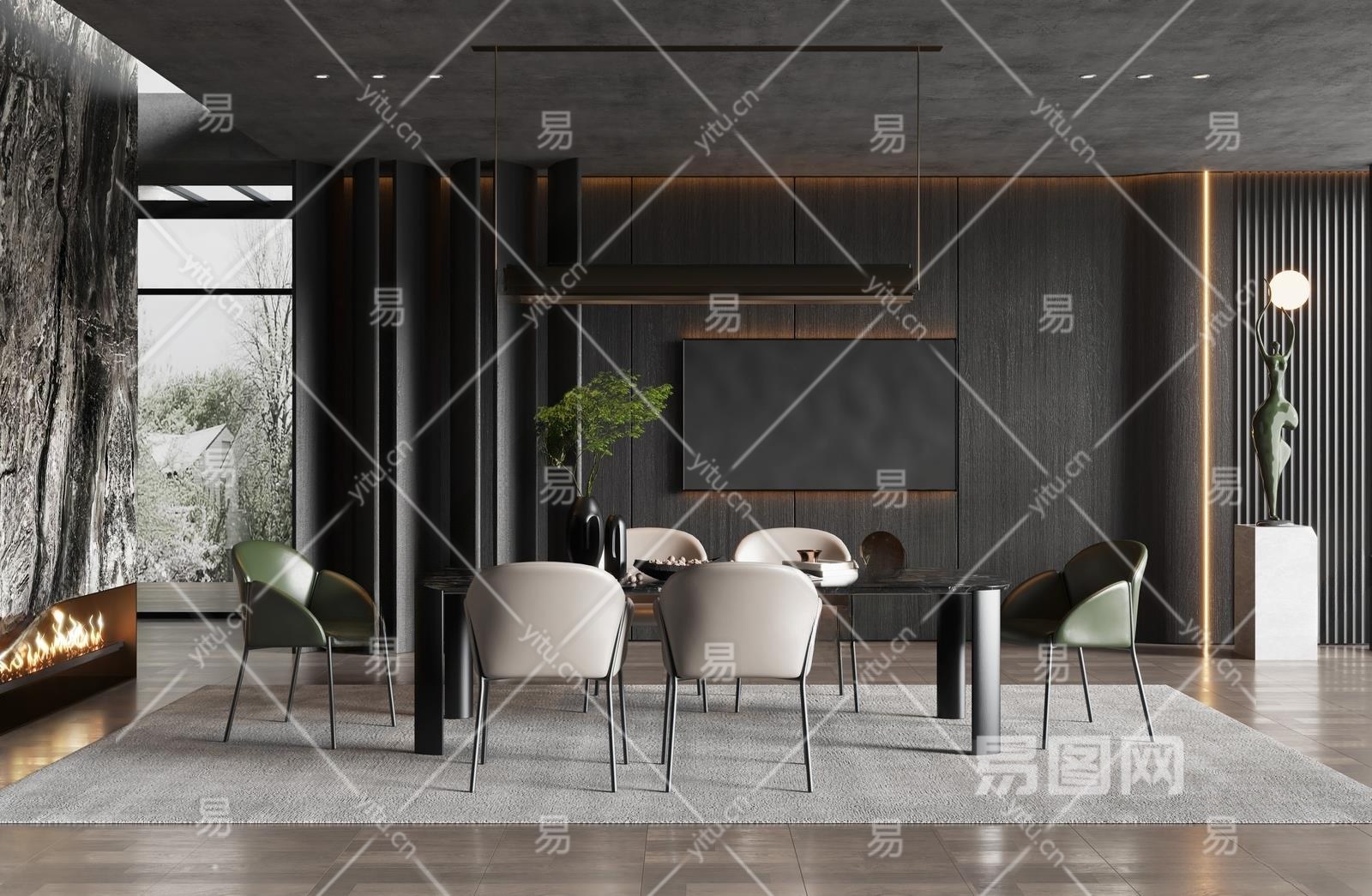现代家居餐厅3D模型下载
