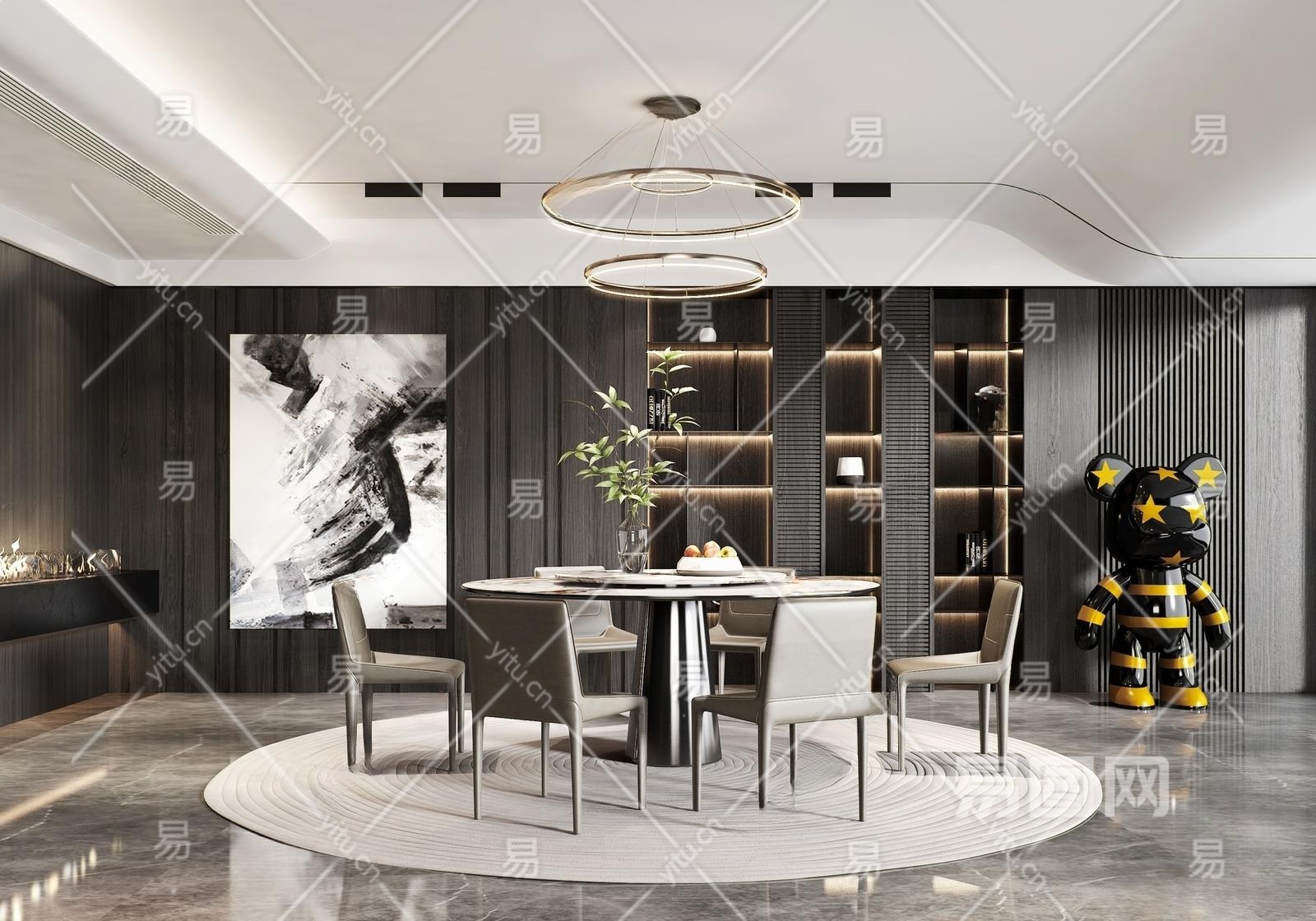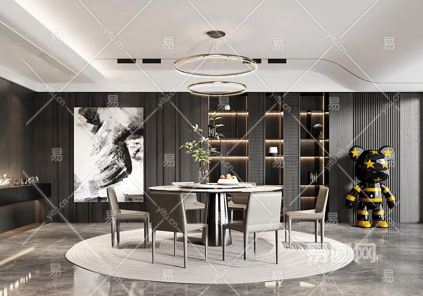 现代家居餐厅3D模型下载