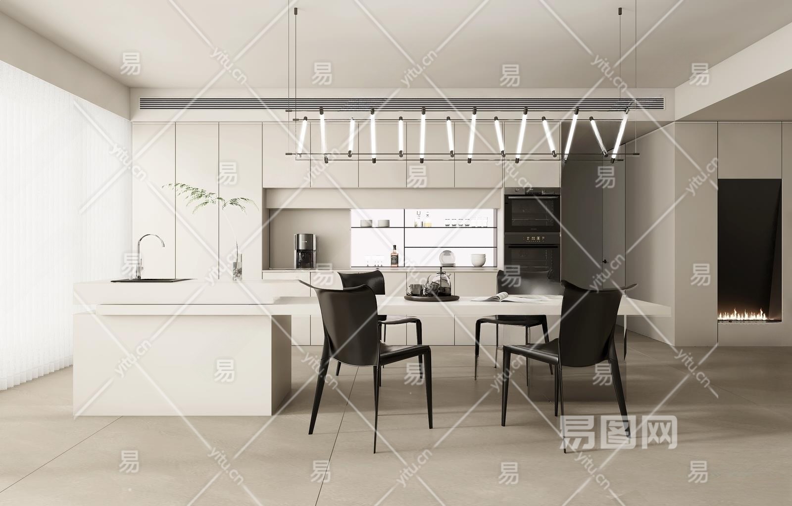 现代餐厅3D模型下载