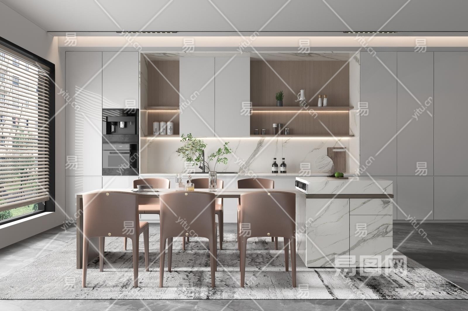 现代家居餐厅3D模型下载
