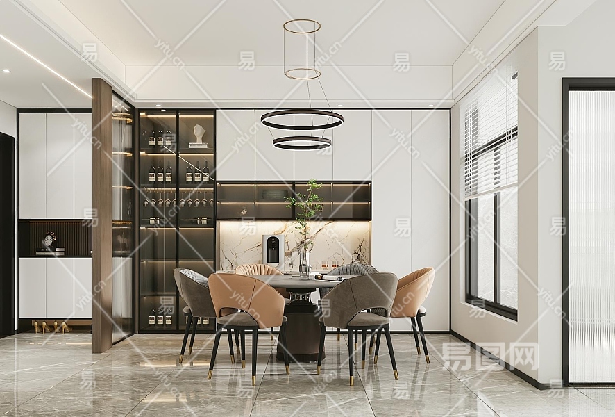现代餐厅3D模型下载