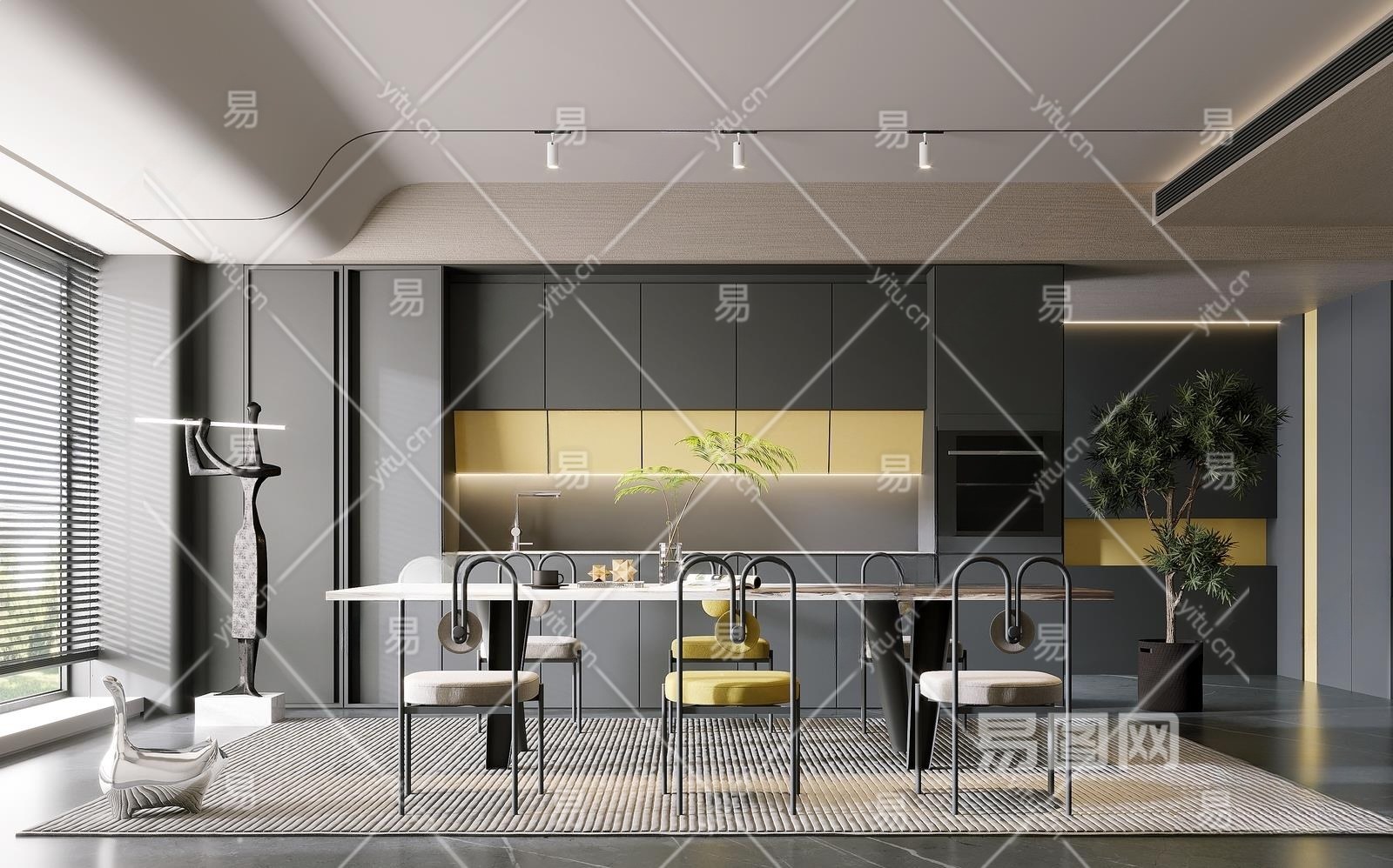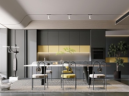 现代高级灰餐厅3D模型下载