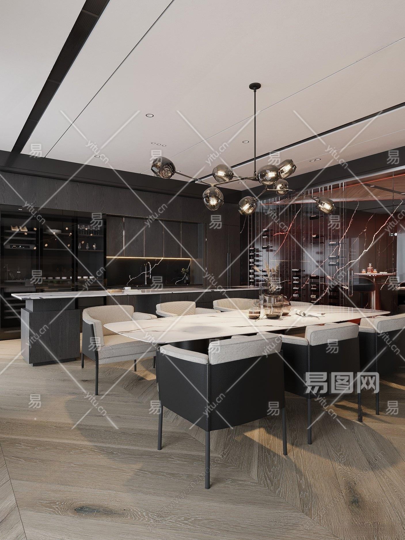 现代餐厅3D模型下载
