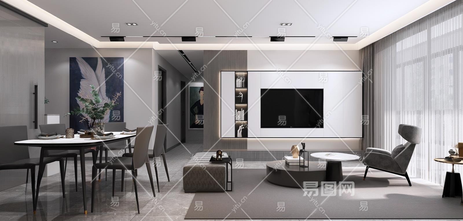 现代家居餐厅3D模型下载