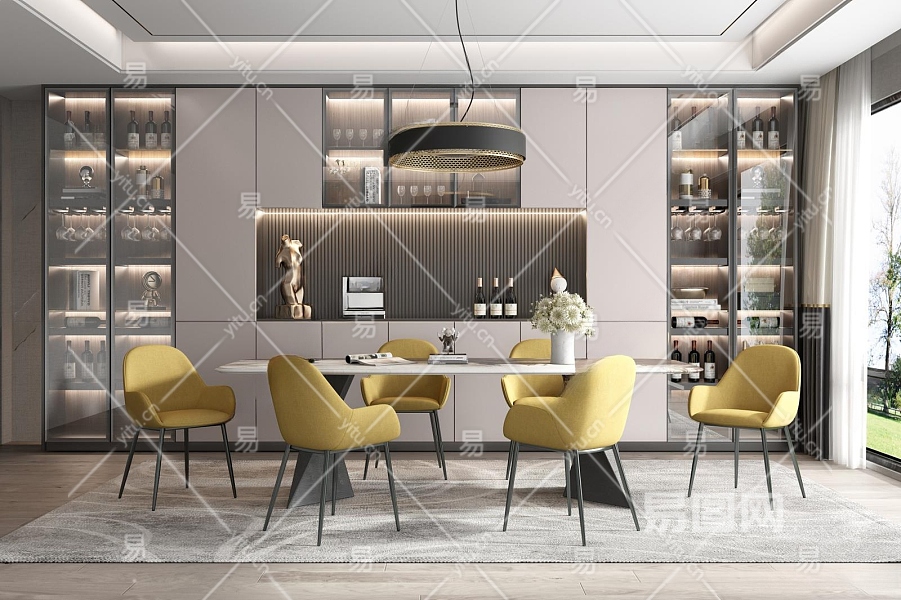 现代家居餐厅3D模型下载