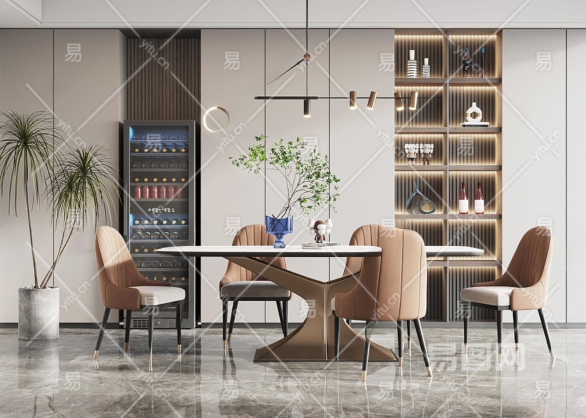 现代家居餐厅3D模型下载