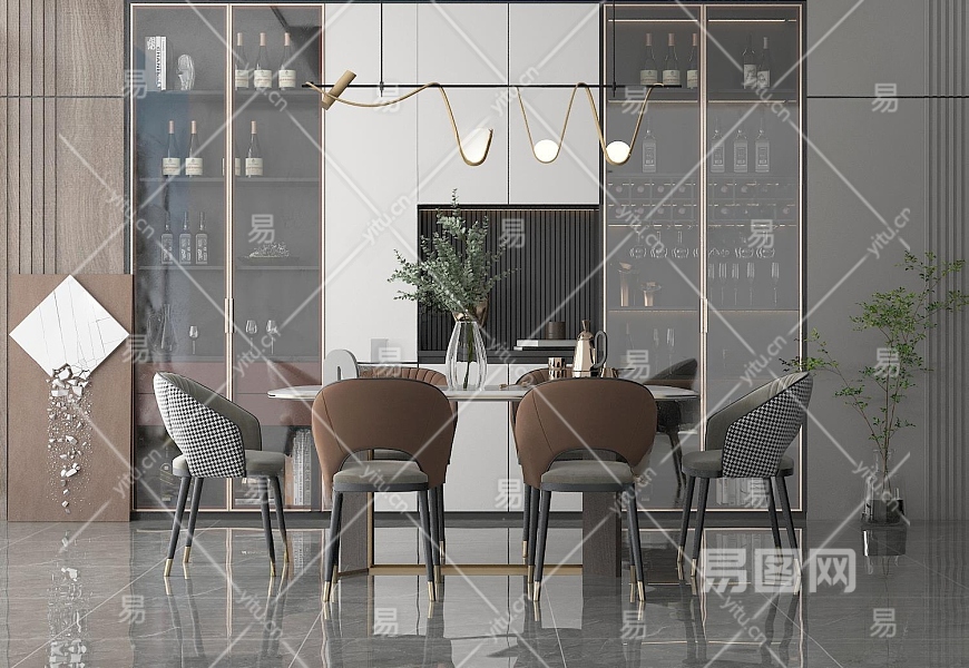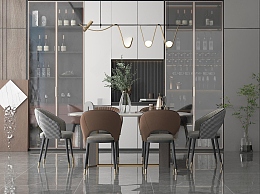 现代家居餐厅3D模型下载