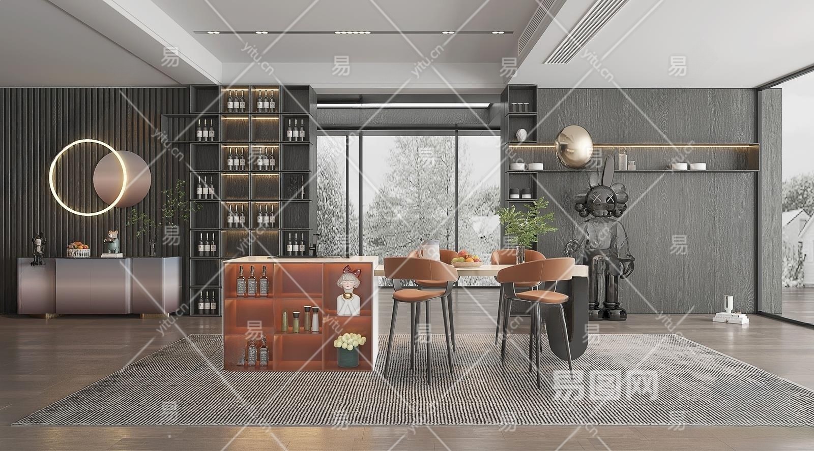 现代家居餐厅3D模型下载
