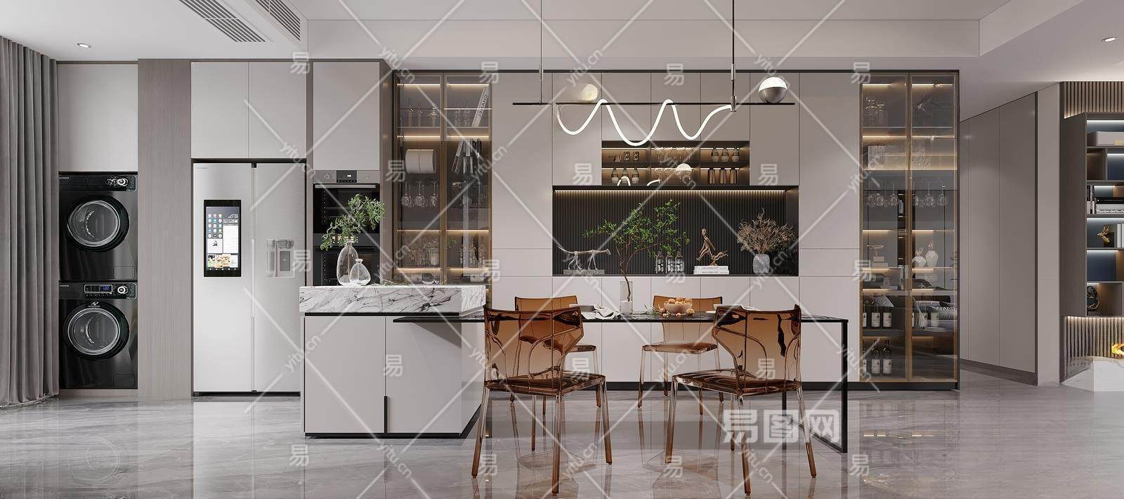 现代居家餐厅3D模型下载